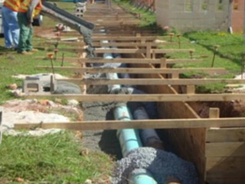 Water system improvements included the construction of a 16-inch waterline spanning 3,445 linear feet. Sewer system enhancements comprised the installation of 3,710 linear feet of a 10-inch sewer line and 2,770 linear feet of a 12-inch sewer line.