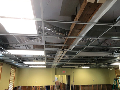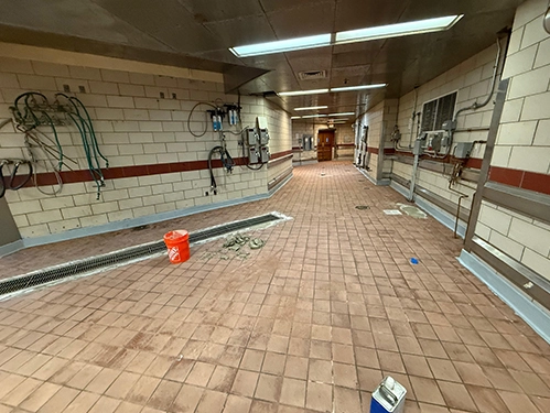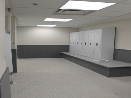 Description: This project involved the demolition and renovation of the 11th floor at the James M. Hanley Federal Building to accommodate a new gym and office space. The scope of work included the installation of new partition walls, doors, casework, woodwork, flooring, and updated mechanical, electrical, plumbing, and fire protection systems. Additional improvements included new men’s and women’s restrooms with lockers, showers, and mosaic tile finishes. Sound clouds were installed below the ceiling grid for noise control, and a new training room was constructed with integrated casework and floor boxes. The project required extensive logistics and coordination with multiple subcontractors to ensure smooth execution within an occupied federal facility.